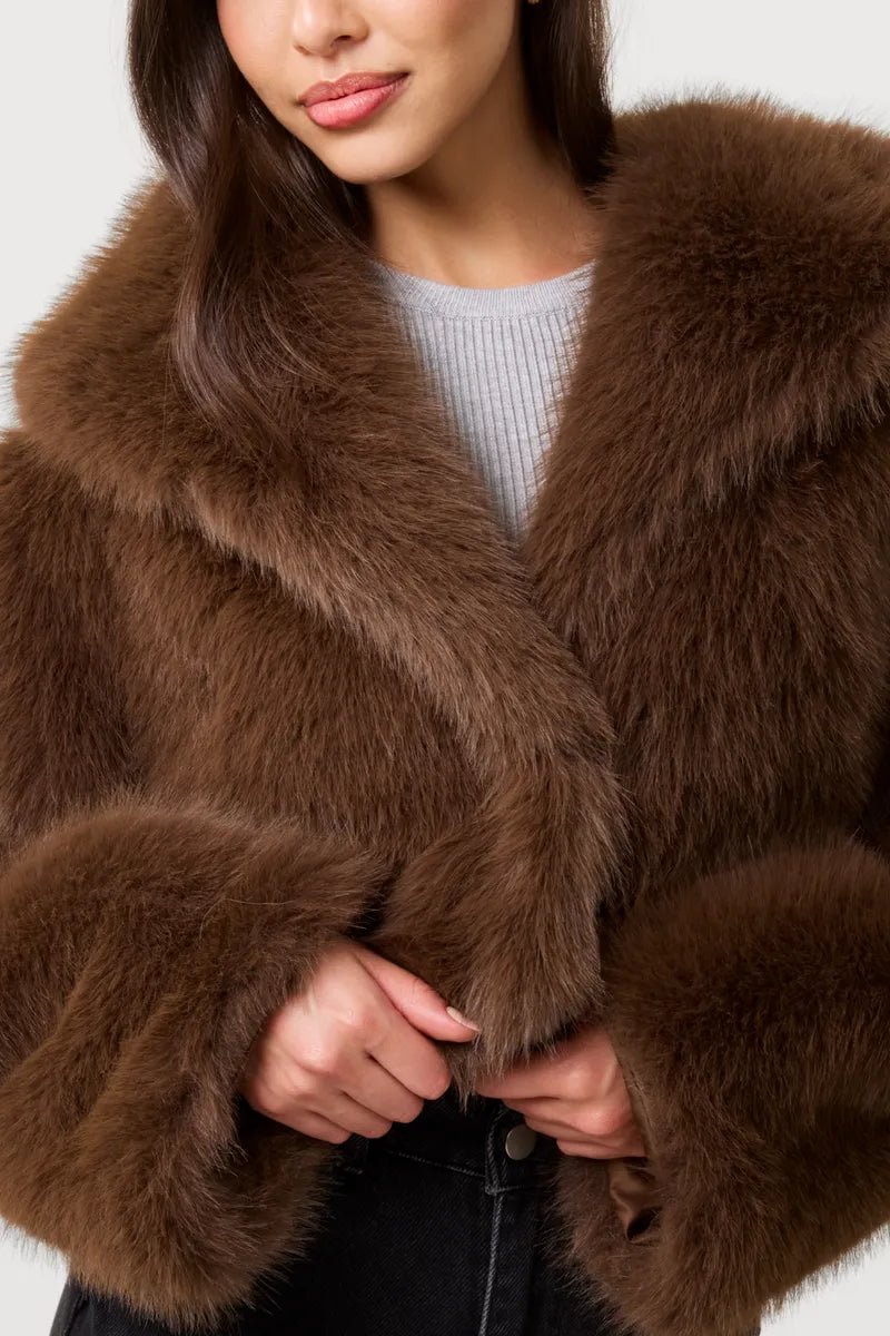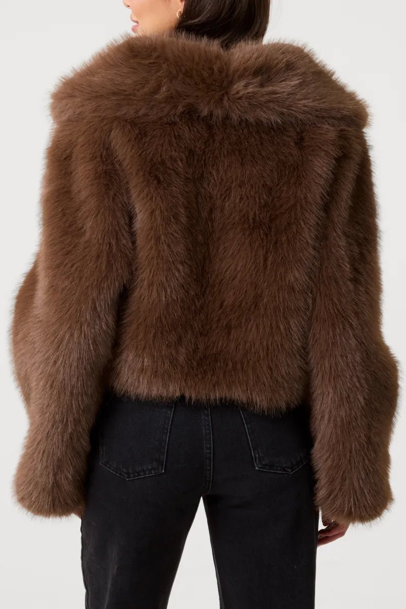 Ready to turn heads? This isn't just a jacket; it's a statement piece. Our cropped faux fur design delivers maximum glamour with a super-soft, plush feel. The shorter length is perfect for layering over dresses or pairing with high-waisted pants. Go from dinner to a downtown event in a flash.